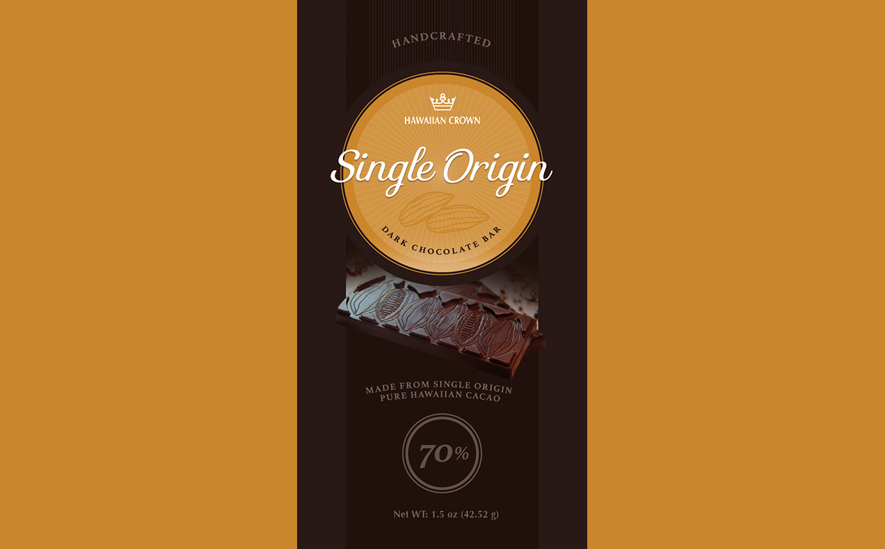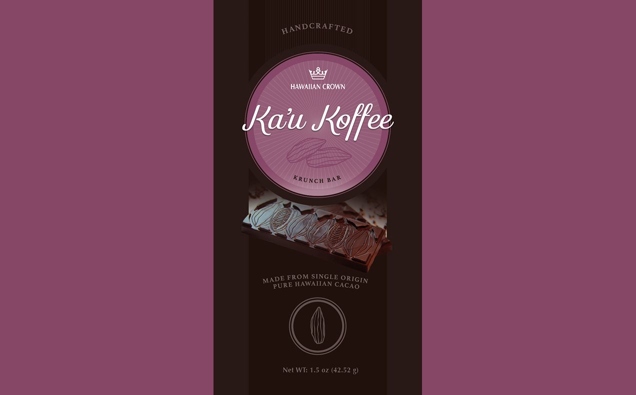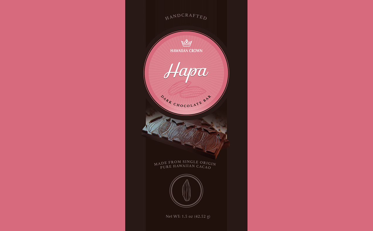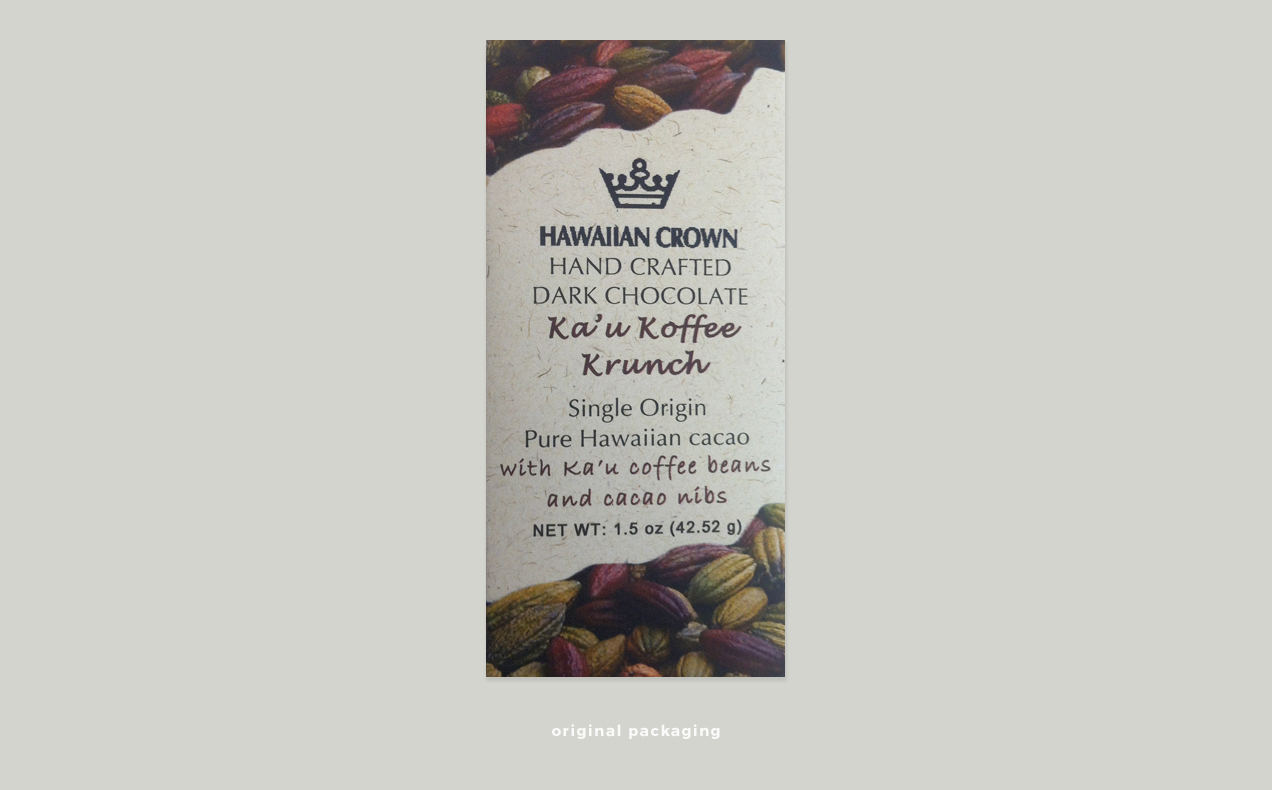 Concept for chocolate bar packaging redesign for Hawaiian Crown.